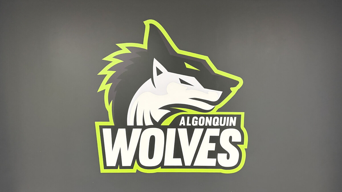 A picture of the Algonquin Wolves logo, as displayed in the Jack Doyle Athletics and Recreation Centre.